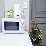 For your convenience, this accommodation comprises an equipped kitchen with coffee and tea making machines, a refrigerator, and a stovetop provided.